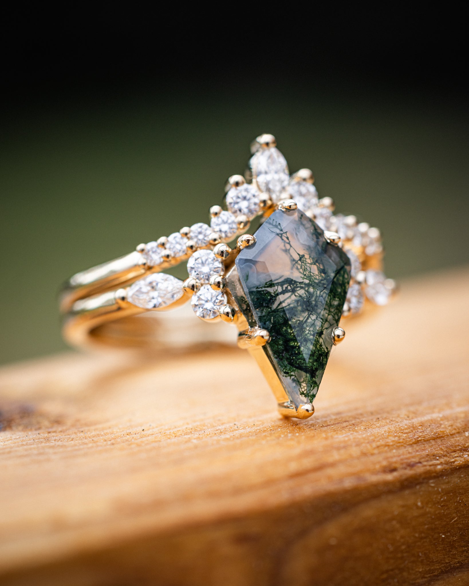 "SAGE" - PEAR CUT MOZAMBIQUE GARNET ENGAGEMENT RING WITH DIAMOND ACCENTS & "FALA" TRACER